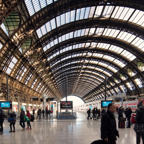 Arrival at Milan's "Centrale" station was a visual appetizer of design delights for the weekend. The exterior of the station is not particularly architecturally attractive, other than its massive scale. It is the colossal amplitude and detailed train sheds and concourses that give rise to a visceral awe.